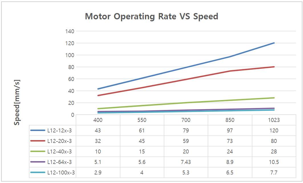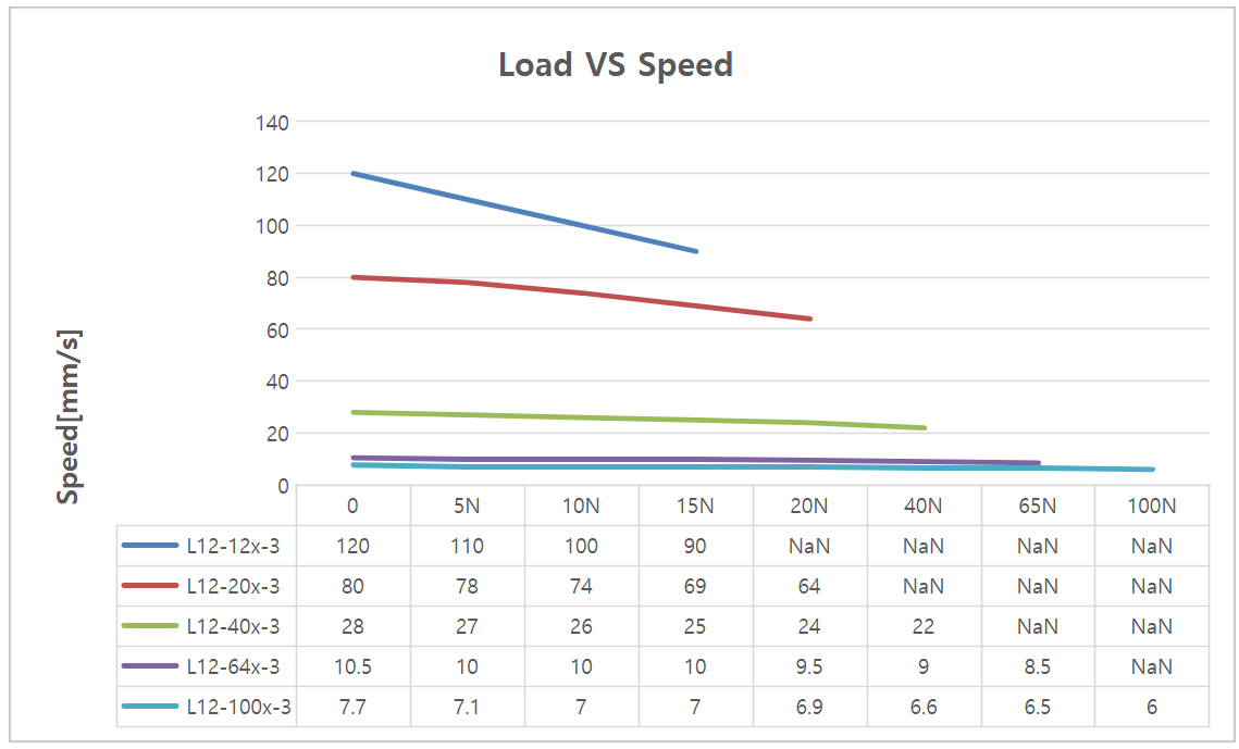 | Maximum Speed at 12.0V 최대 속도 at 12.0V | 119 | 120 | 121 | mm/s | L12-12PT-3 |